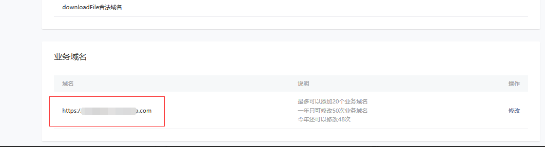 ②.需登录小程序管理后台配置域名白名单,打开微信小程序公众平台,点击“设置”-“开发设置”,开始配置域名,先下载“校验文件”,然后配置域名成功后,在手机端页面可以正常显示。